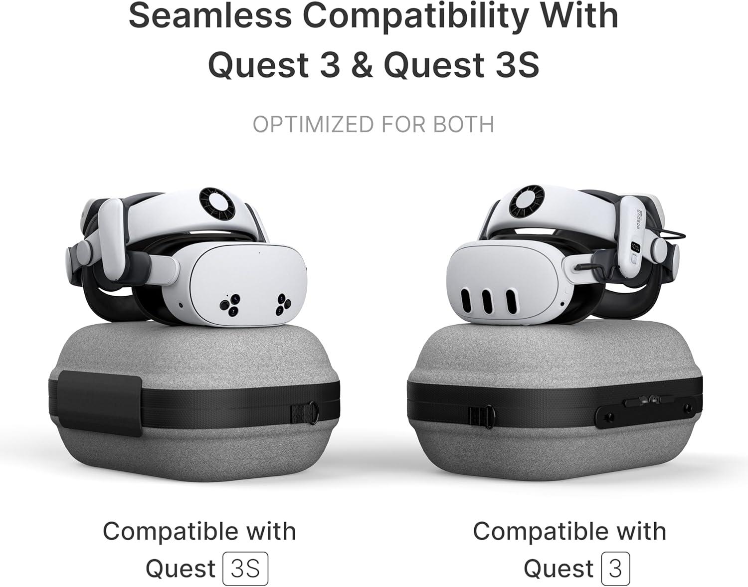 Larger Storage Space: perfectly accommodating the Quest3 with S3 Pro strap with most of your accessories. It also comes with a dedicated mesh zipper bag for small items such as chargers, cables, and batteries.