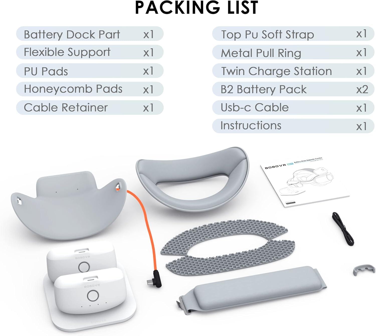 BOBOVR specially developed a Strap upgrade kit for Pico4, which can improve the battery life and comfort of Pico4. It includes a circular power supply system composed of 2 magnetic suction battery packs and a charging stand, and upgrades the back of the head cushion and the top Strap.